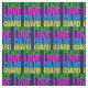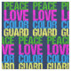 Un mignon tissu de garde colorée pour quelqu'un qui joue le drapeau en tournant avec le groupe de marche à l'école. Peace Love Color Guard est écrit en vert, rose chaud, bleu et jaune néon.