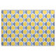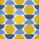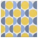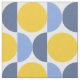 Ce tissu audacieux présente des cercles géométriques modernes et des demi-cercles dans des tons clairs de jaune et de bleu.