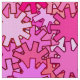 Tissu dans un motif géométrique représentatif de roues ou de engrenages à rayons, dans les tons roses, du rose pâle à fuchsia profonde - un peu Steampunk, un peu moderne du milieu du siècle