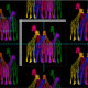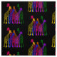 Conception colorée comportant des contours des girafes de couleurs variables (jaune, vert, pourpre, orange, bleu, et rose)