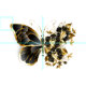 Or flower butterfly with black jewelry orchid, decorated with gold leaves on white background.