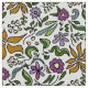 Floral illustrated fabric for sewing and crafts. Flowing golden flowers, along with purple blooms, and tiny yellow bell-shaped flowers make a seamless, repeating pattern on ecru color. Leafy green stems and branches add to the cottage garden feel of this design. Choose your favorite material.