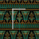 Ce magnifique design Art Déco unique est d'inspiration égyptienne et comprend des éléments géométriques et des éléments de ventilateur aux couleurs vives, turquoises, dorées et noires.