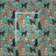 Golden Doodles vintage tissu floral turquoise