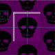 Ces crânes noirs sont dans un motif à pois, sur un arrière - plan goth violet.