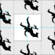 Noir et blanc, motif moderne et clair avec un Grand Danois tenant un Berger Allemand dans ses pattes.