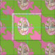 motif rose et vert avec grenouille abstraite.