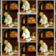 Vintage Halloween greeting card illustration showing a child "spooked" by a jack o'lantern at the window.