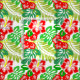 Les belles ketmies de conception florale impriment le tissu avec les fleurs tropicales colorées et la couleur faite sur commande d'arrière - plan. Tissu tropical coloré de conception de fleur pour la couture.