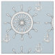 Le gouvernail du navire blanc au centre avec des ancres et des cordes en haut à droite et en bas à gauche. Arrière - plan bleu moyen peut être customisé.
