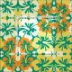 Motif de fleurs d'hibiscus dans un motif / arrière - plan en émeraude, sorbet au citron, couleur ivoire blanc et orange.