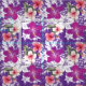 Tissu Hibiscus imprimé à fleurs violet rose blanc et ver