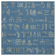 Ce design audacieux présente des hiéroglyphes en or métallique d'inspiration égyptienne sur un arrière - plan bleu.