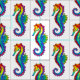 Artistiquement dessiné, lumineux, arc-en-ciel, cheval de mer polygonale sur arrière - plan blanc. Un tatouage brillant.