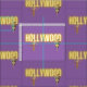 Un motif en tissu amusant présente Hollywood en néon texte avec deux beautés vintages coutume photo sur arrière - plan violet