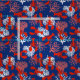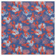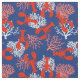 Tissu côtier rouge, blanc et bleu à motifs de homards rouges et corail de mer rose et blanc sur bleu marine