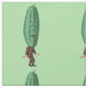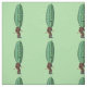 Ce tissu personnalisé de la cour a une image répétée d'un homme drôle en costume marron avec une grande tête de cornichon vert avec un visage surprenant à l'air sur un arrière - plan vert clair.