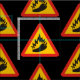 Triangle warning sign with a pepper and flame silhouette.