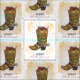 Cette botte de cowboy est tout habillée pour la saison des fêtes avec une série de lumières enveloppées autour et l'éperon remplacé par une cloche à sonnettes. C'est une façon festive et occidentale de célébrer la fête. L'Arrière - plan présente des étincelles et des flocons de neige avec les mots Howdy Holidays en bas. La botte est fourrée avec un cadeau et un sucre de canne. Produits correspondants disponibles.
