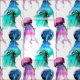 Tissu Illustration colorée de l'aquarelle des méduses