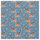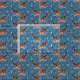 Ce tissu illustré présente des illustrations de style réaliste de poissons koi en orange, noir et blanc dressés contre un motif géométrique bleu à l'allure d'ondes océaniques.