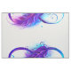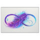 Infinity symbole with a beautiful feather painted in purple and blue bright colors on white background