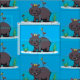 Tissu Ippopotame drôle mignon avec dessin animé d'oiseau