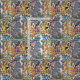 Ma peinture murale originale en tuiles droits d'auteur d'un lapin lapin lapin, fleurs et oiseaux stylisés de style jacobéen est imprimée sur un tissu de qualité design pour votre décoration ou artisanat.