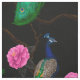 Oiseaux de paon perchés sur des branches et fleurs de camélia rose, ce motif est dessiné à la main dans Photoshop.