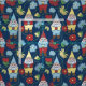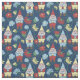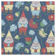 Tissu Jardin Gnomes avec Fleurs Marine Bleu Motif