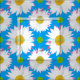 Tissu jaune assez bleu de coutume de marguerites