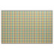 Tissu avec un plaid vert lumineux jaune, orange, et de seafoam, avec des accents bleus et blancs. Un motif original de Plaidwerx dans l'industrie de la mode tendant des couleurs.