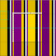 Ce design a un motif rayé avec des couleurs comme le jaune, le violet, le cyan clair et le noir.