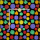 Offres amusantes artisanales pour les fans de jeux de rôle différents et de jeux de société d'imaginaire avec ce tissu à motifs. Il présente des illustrations colorées de différents dés de jeu avec des dés 12, 20 et 4 faces en vert, rouge, orange, violet et jaune contre un arrière - plan noir.