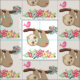 Tissu à motifs avec l'illustration d'un mignon paresseux brun accroché à l'envers. Ce drôle de petit gars se tient sur une branche qui a un petit oiseau rose d'un côté de la branche et un bouquet de roses à la façon d'un doodle de l'autre côté. En-dessous se trouve un arrangement de fleurs colorées dessinées à la main. Cette paresse adorable a aussi des joues roses et 3 coeurs mignons sur son cul. Couleur arrière - plan jaune clair. Ferait d'adorables pyjamas ou autres vêtements confortables pour le farniente autour.