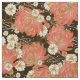 Tissu motif japonais avec chrysanthèmes et mamans en brun foncé