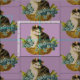 Sucré, chaton vintage dans un panier de fleurs, avec arrière - plan lilas fait pour un joli design de tissu! Idéal pour l'artisanat, le décor maison et les projets de couture pour les vintages ou les amoureux de les chats !