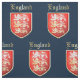Ce design contemporain inspiré du Grand Sceau du roi Richard Coeur de Lion présente trois lions d'or identiques alignés les uns sur les autres sur un bouclier rouge. Note : le look métallique est simulé dans l'illustration. Aucun métal ne sera utilisé dans l'impression de ce dessin.