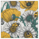 Motif vectoriel transparent fait de marguerites dessinées à la main, de pavots et de coccinelles. Version couleur jaune et blanc.