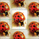 Ce tissu de nature animale est composé d'un motif répétitif d'une coccinelle (Coccinellidae), également connu sous le nom de coccinelle, vache ou dame, avec des taches rouges, orange et jaunes et des taches noires. Cet insecte est un ami célèbre du jardinier qui se nourrit de pucerons et d'autres parasites du jardin.
