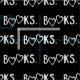 Un tissu modelé pour le lecteur avide, avec des LIVRES écrits dans le blanc sur le noir, avec des coeurs pour des o et des coeurs roses mignons comme périodes.