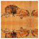 Un lion berbère éteint crouching, repos, stylo et encre dessin du peintre néerlandais Rembrant Van Rijn fin des années 1640. Design classique dans des couleurs vives jaune orange brun noir.