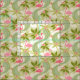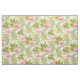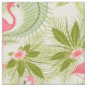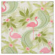 Mon illustration vectorielle originale d'une variété de plantes tropicaux stylisés, de fleurs d'hibiscus, de flamants roses et de formes de cachemire, dans des tons rose, vert, et d'aqua clair, sur un blanc ancien, avec un subtil grain de tissu simulé, pour donner au design la sensation d'un tissu d'écorce vintage.