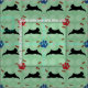 Un Schnauzer standard saute sur un arrière - plan de vert-bleu avec un éparpillement d'os et de pistes de pattes. Cette conception est destinée à la tuile de manière transparente.
