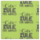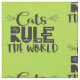 Un motif branché et charmant, avec les mots "Les chats dominent le monde" en noir, décoré de whiskies blancs, d'égratignures de chat, d'une minuscule souris et d'une petite patte, sur un arrière - plan vert vif.