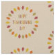 Ce magnifique tissu artisanal est parfait pour toutes les marques de Thanksgiving. Le design présente une image art numérique d'une série de feuilles de chêne dans les tons rouge, orange, jaune et vert disposés en cercle autour d'un texte avec des lettres alternées de rouge, jaune, orange et vert qui dit Bon thanksgiving Day.