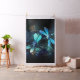 Deux libellules transparentes, lumineuses, turquoise, artistiquement dessinées sur l'arrière - plan de nuit avec des algues luminescentes et des lucioles. libellule éclatante.