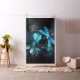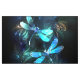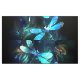 Deux libellules transparentes, lumineuses, turquoise, artistiquement dessinées sur l'arrière - plan de nuit avec des algues luminescentes et des lucioles. libellule éclatante.
