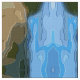 Un design abstrait lumineux et coloré d'une vue sur la montagne, avec ciel bleu, roche et arbres.
