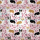 Tissu les trois corgi dogs cerise fleurs roses